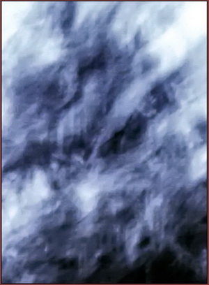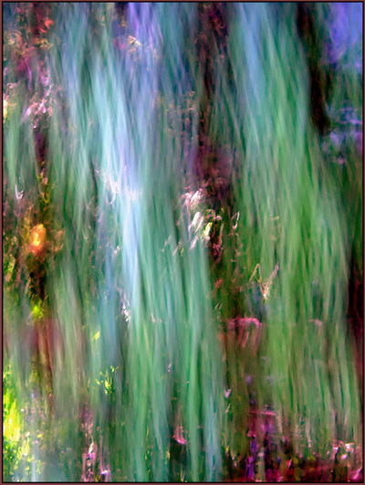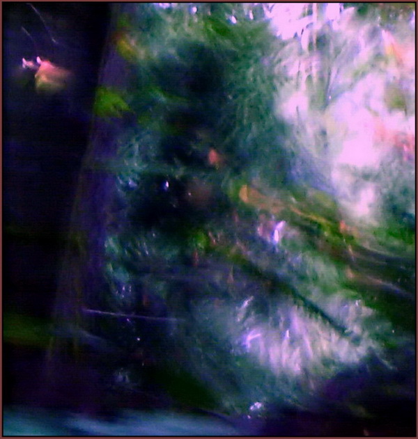 A beautful faery face stands out against the busy elemental activity in the treetops.
